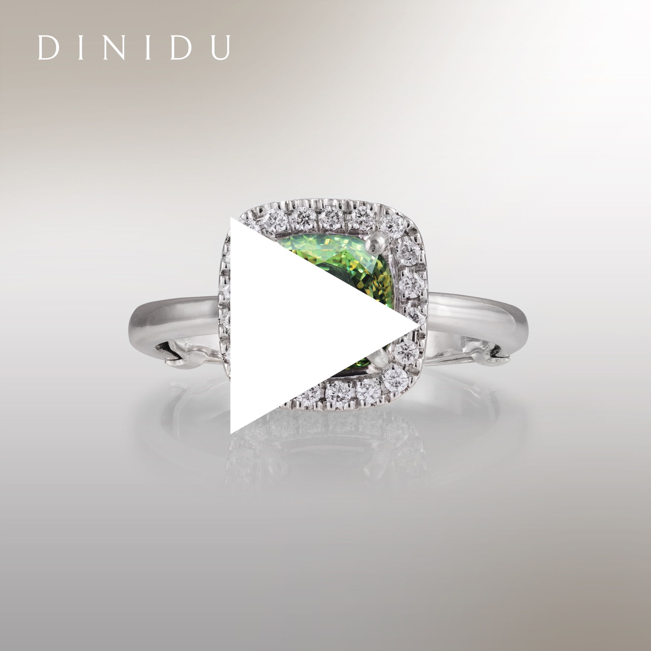 This rare and vibrant alexandrite is set among four voluminous prongs with round brilliant diamonds and crafted with a clean and contemporary white gold band. shimmering diamonds encircle this intensely coloured gemstone, which reflects shades of green and yellow, adding that extra layer of sparkle.