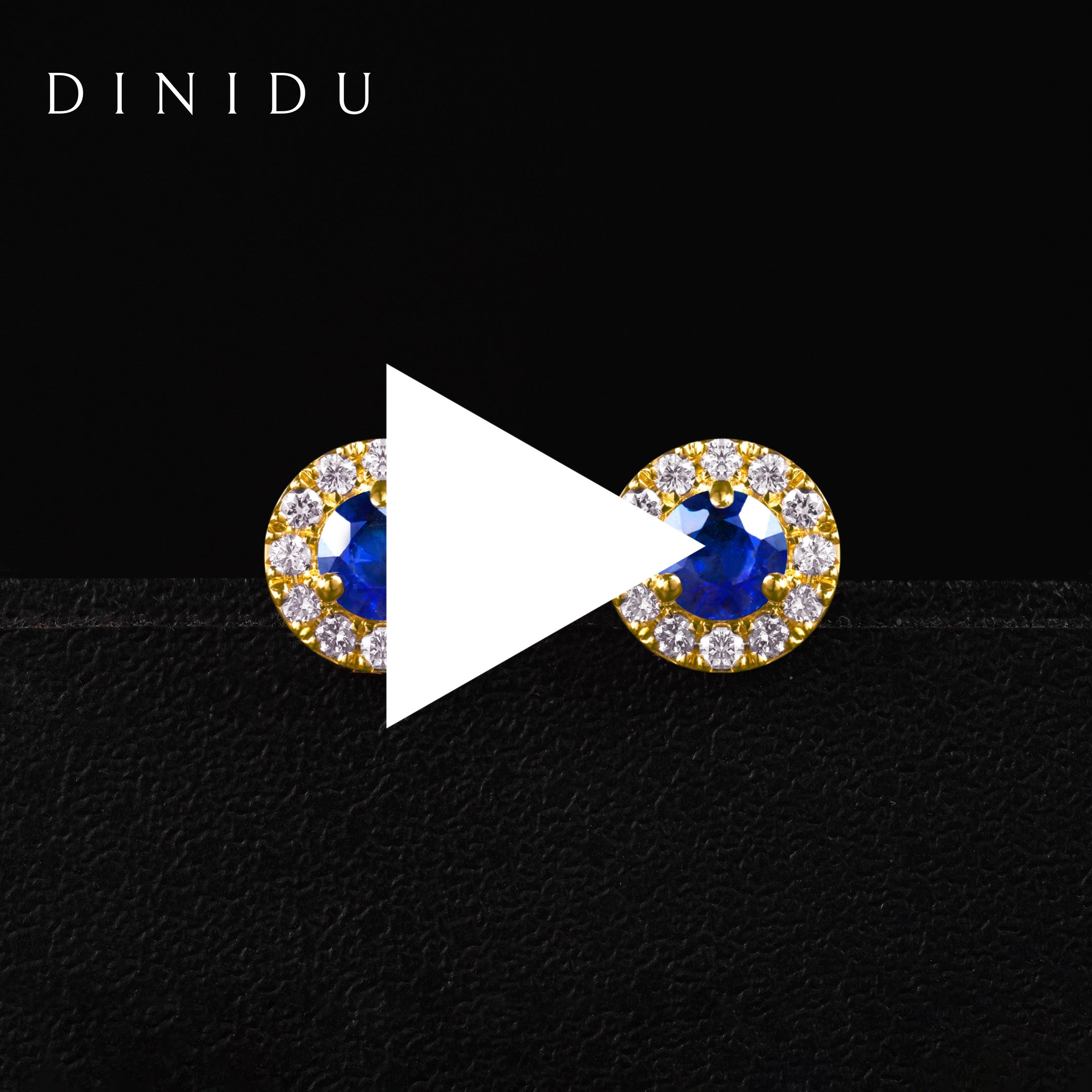 The perfect balance of classic and contemporary lies in the elegant Angelica Earrings featuring round-cut blue sapphire centres that are encircled by gleaming halos of round brilliant diamonds, beautifully set in yellow gold.