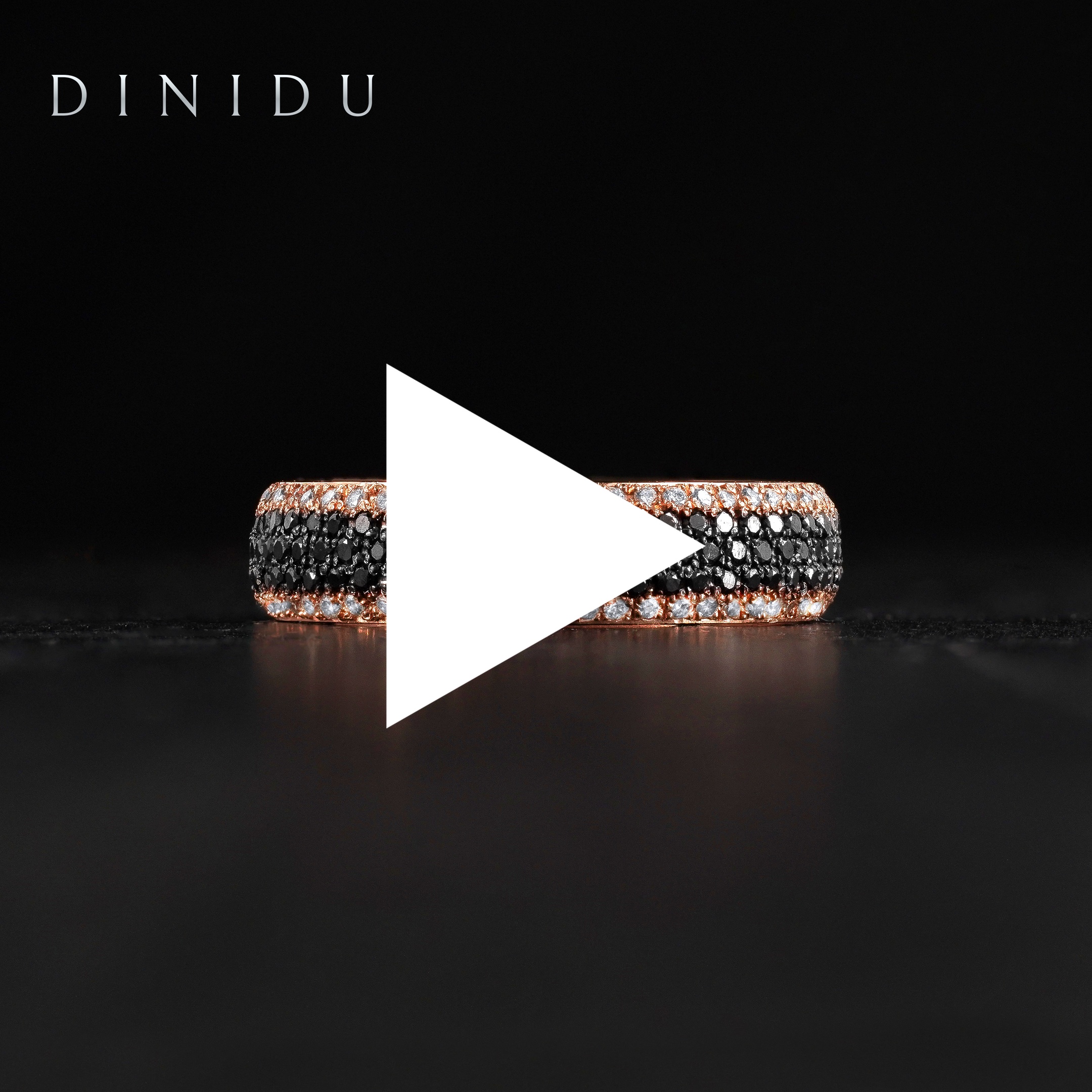 You are the Yin to my Yang, just like this rose gold ring that is studded with three rows of dashing black diamonds and a line of round brilliant diamonds adorning each border of the band.