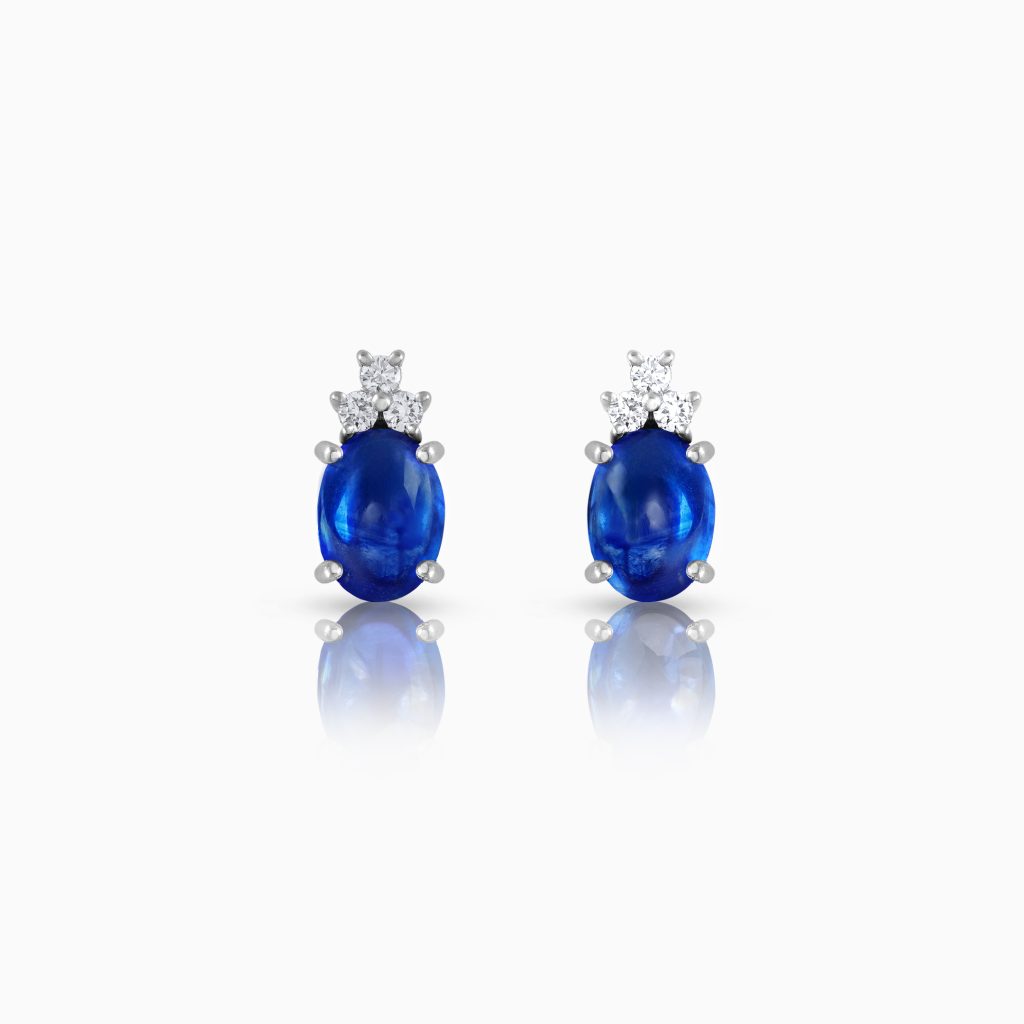 Inspired by the gemstone work that graced the Parisian ateliers during the art décor period, and the Agasti jewellery that adorned the noblewomen of Kandy, we present to you the Blue Empress Sapphires and Diamonds White Gold Earrings, crafted with oval shaped cabochon cut sapphires set with a trio of round brilliant diamonds, featuring a melding of two civilisations in one masterpiece.