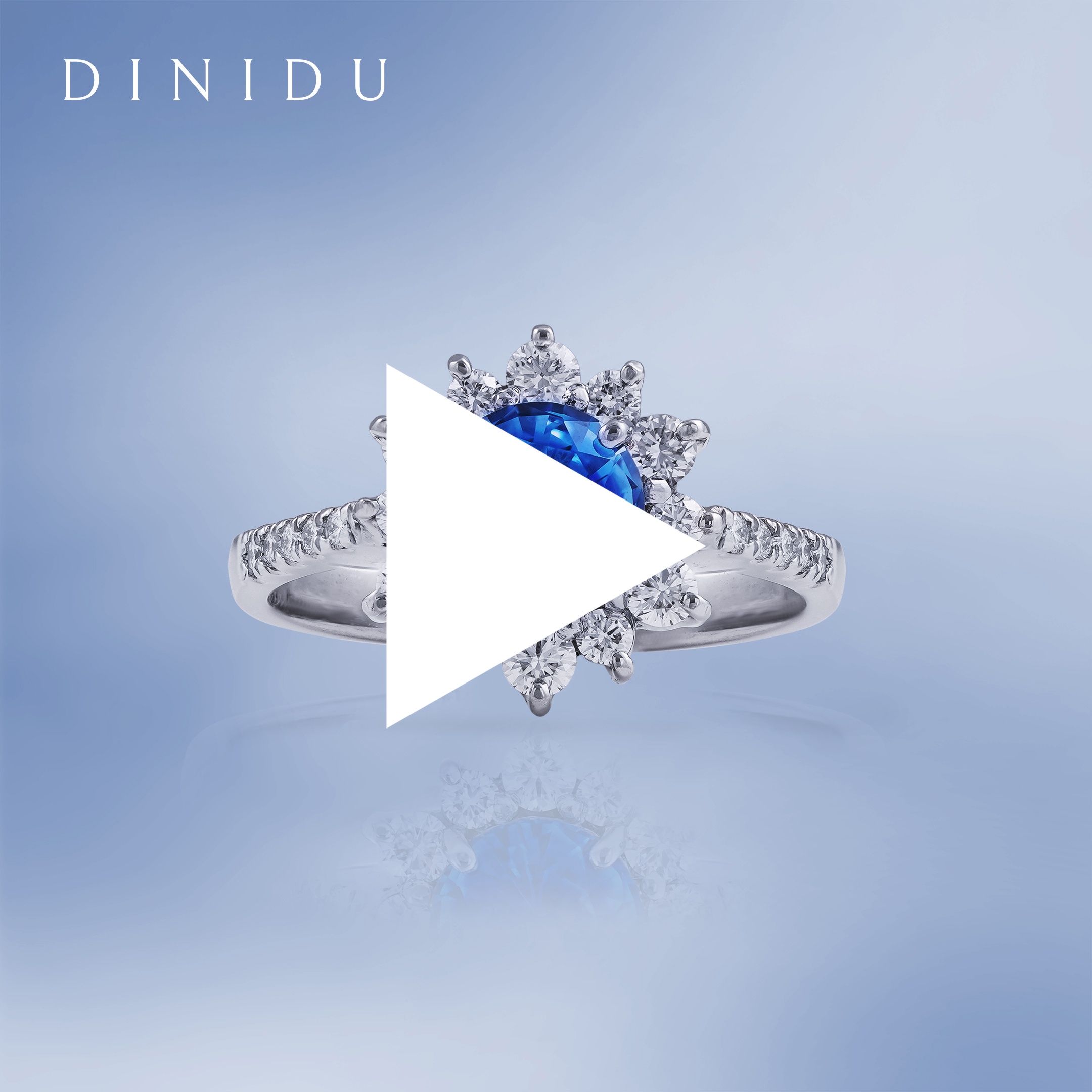 The blue sapphire and diamond halo white gold ring is a dreamy piece evoking a blossoming flower. The round-cut blue sapphire is surrounded by round brilliant diamonds that are set on a tapered white gold shank decorated with diamonds, adding further lustre to the design.