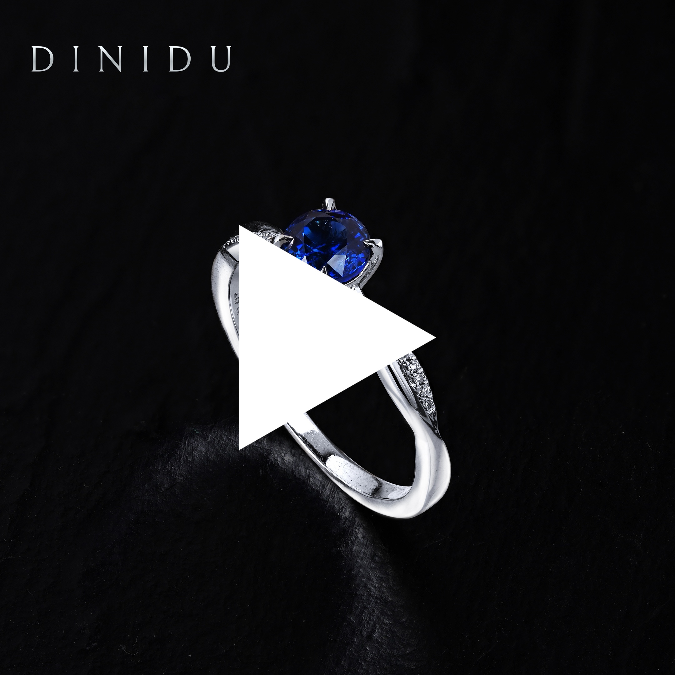The blue sapphire and round brilliant diamonds white gold ring symbolises eternal love, featuring a round-cut sapphire center stone on an infinity-shaped band of white gold adorned with round diamonds.