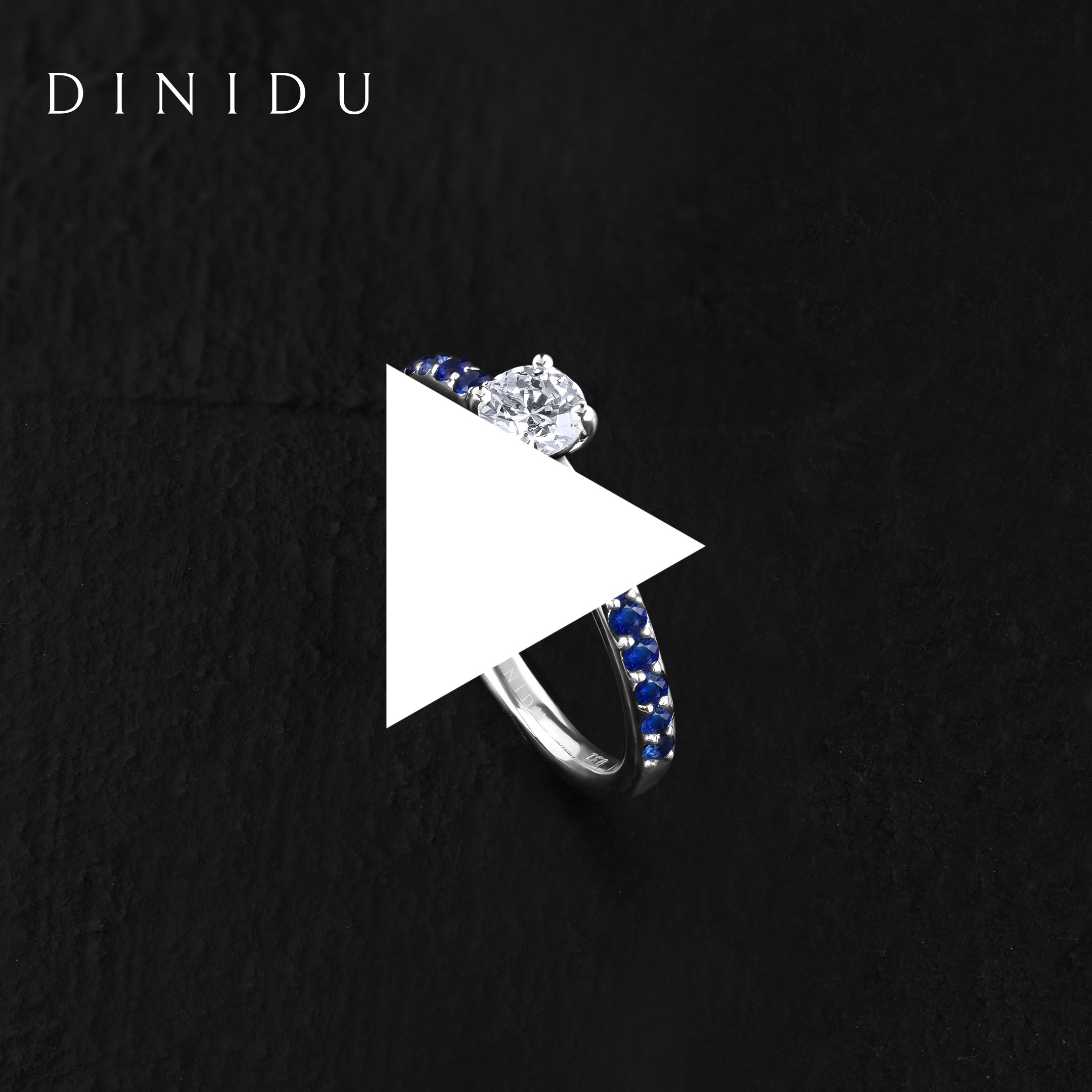 Inspired by the tranquil depths of a midnight sky, where a single, brilliant star shines amidst the serene blue; the Muse Diamond Ring features an elegant round brilliant diamond centre stone with velvety blue sapphire stones decorating the white gold shank.