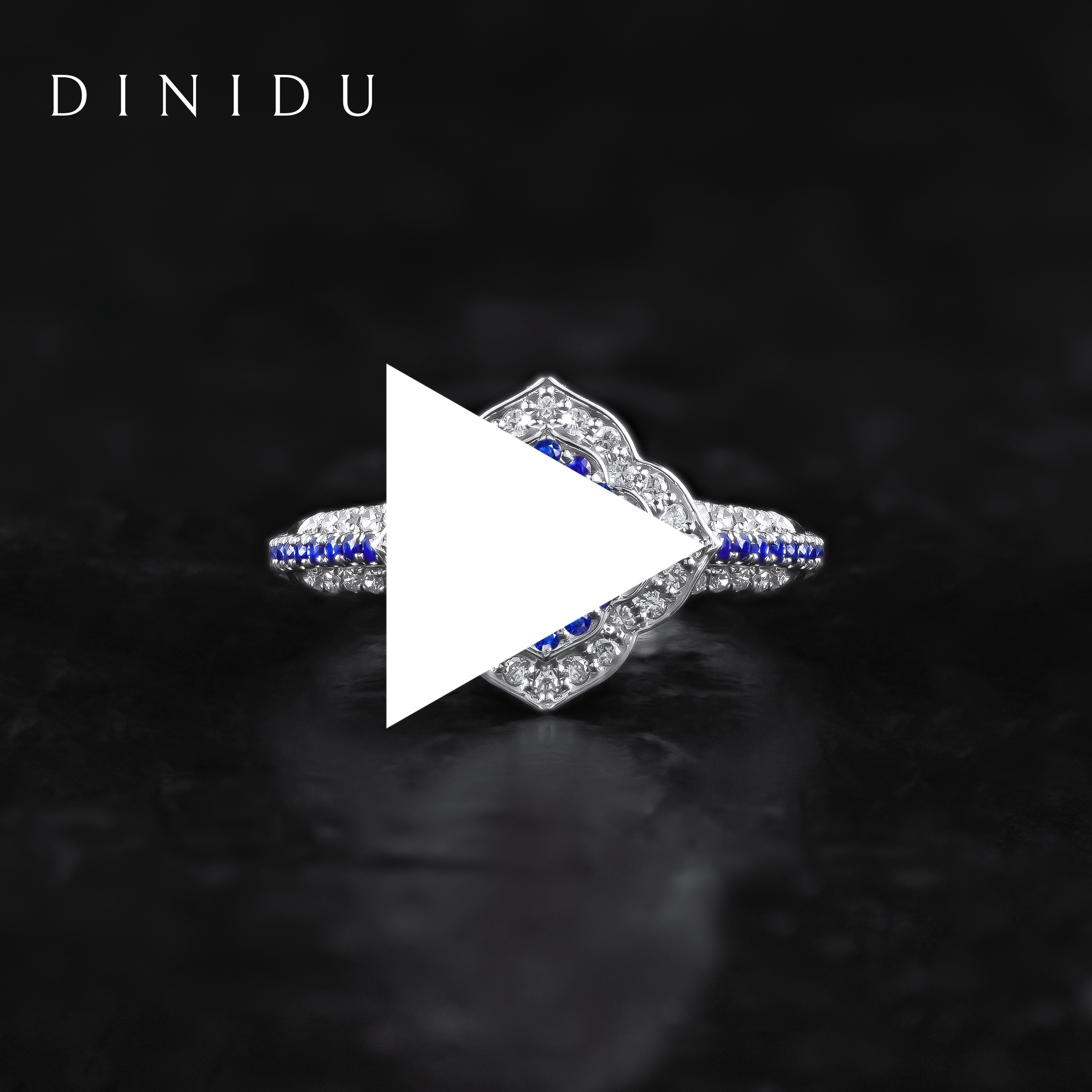An orchestra of precious stones set together to evoke a harmony of brilliance. Centred with a luxurious princess-cut blue sapphire encircled by a floral-shaped double halo, the inner halo is set with round-cut blue sapphires, and the outer halo is decorated with round brilliant diamonds. This design is completed with a three-row split shank of platinum decorated with half-shank stones composed of a middle row of blue sapphires and outer rows of diamonds.