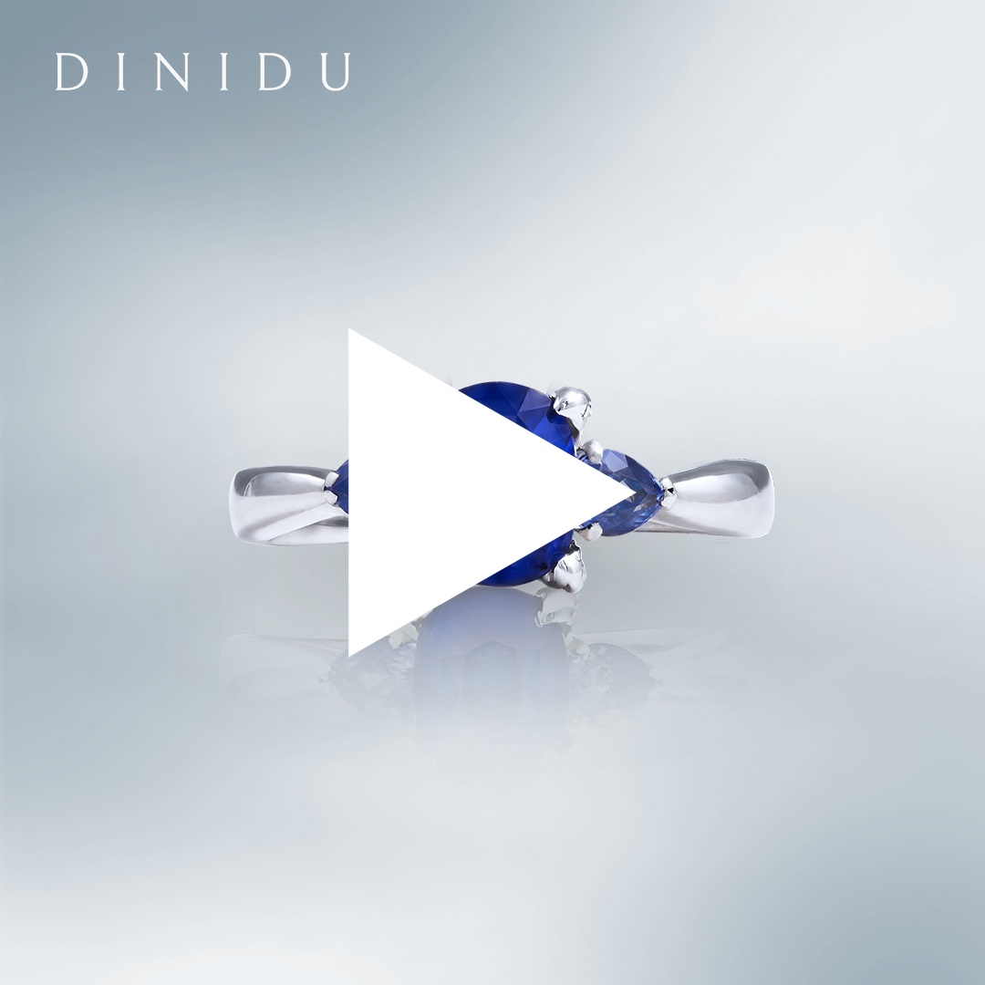 Mesmerizing vivid blue cushion-cut sapphire with two pear-shaped Caribbean blue sapphires on the sides of a white gold shank projecting simplicity and elegance.