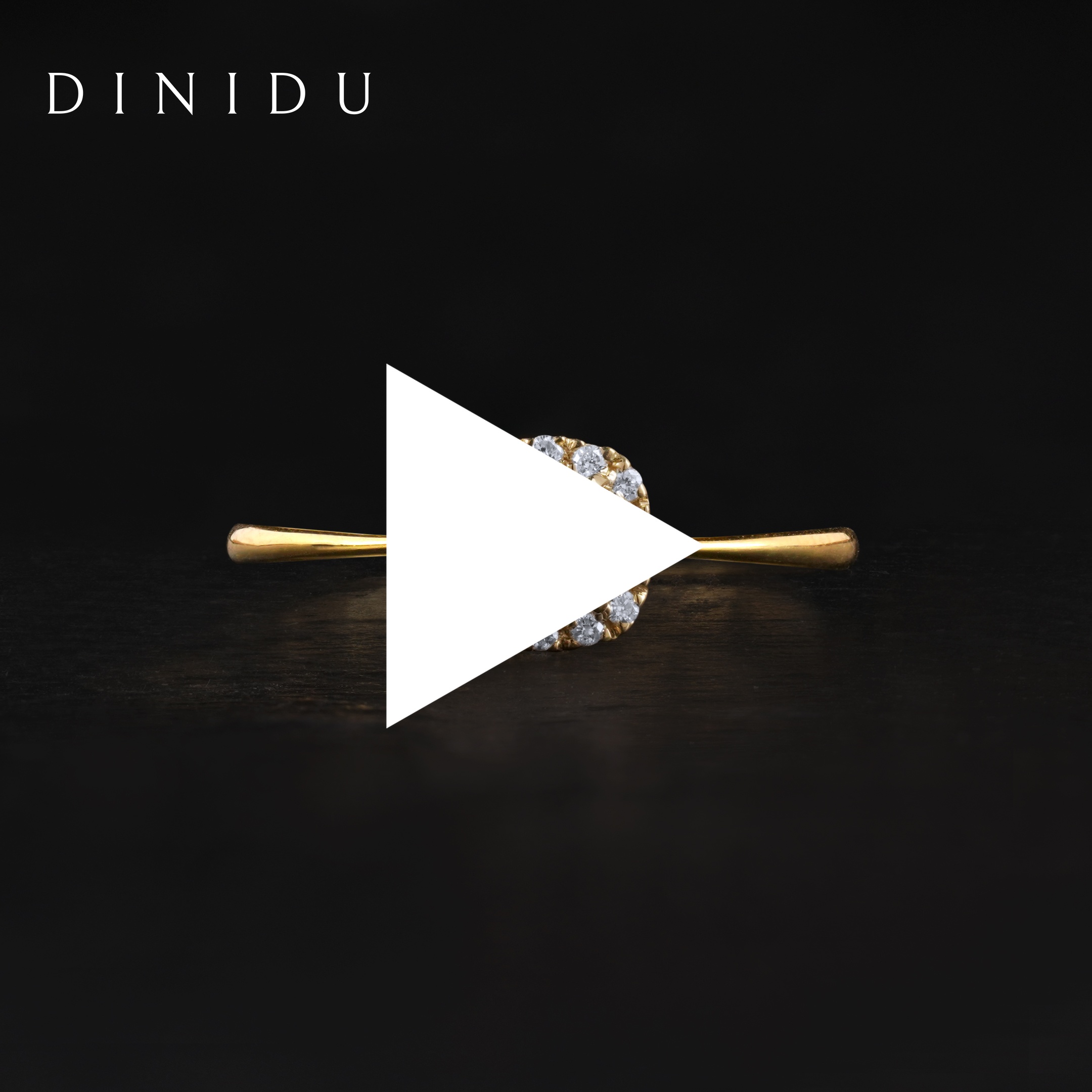 A symphony of diamonds that embodies grace & elegance. The centre round brilliant diamond is surrounded by a cushion-shaped halo of round brilliant diamonds set on a slender tapered shank of yellow gold.