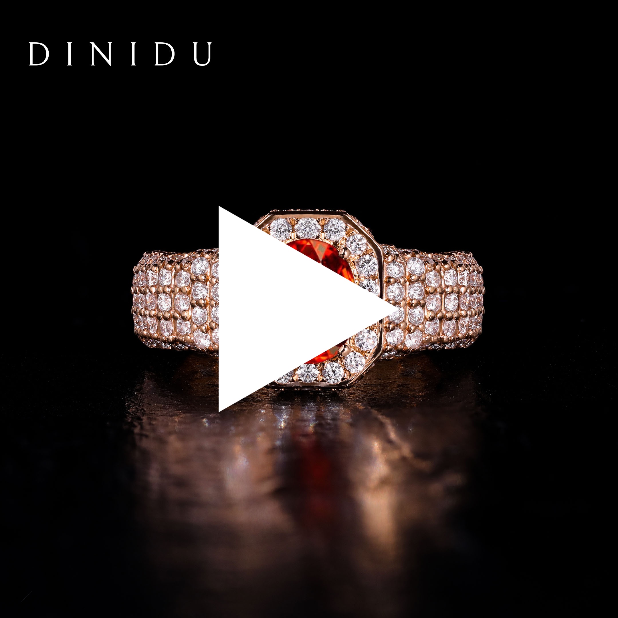 Inspired by the vermillion hues of Sri Lanka's tantalising spices, this majestic ring is crafted with a bright red Ceylon hessonite garnet encircled by a halo of round brilliant diamonds, whilte its gorgeous rose gold band is decorated with rows of round brilliant diamonds.