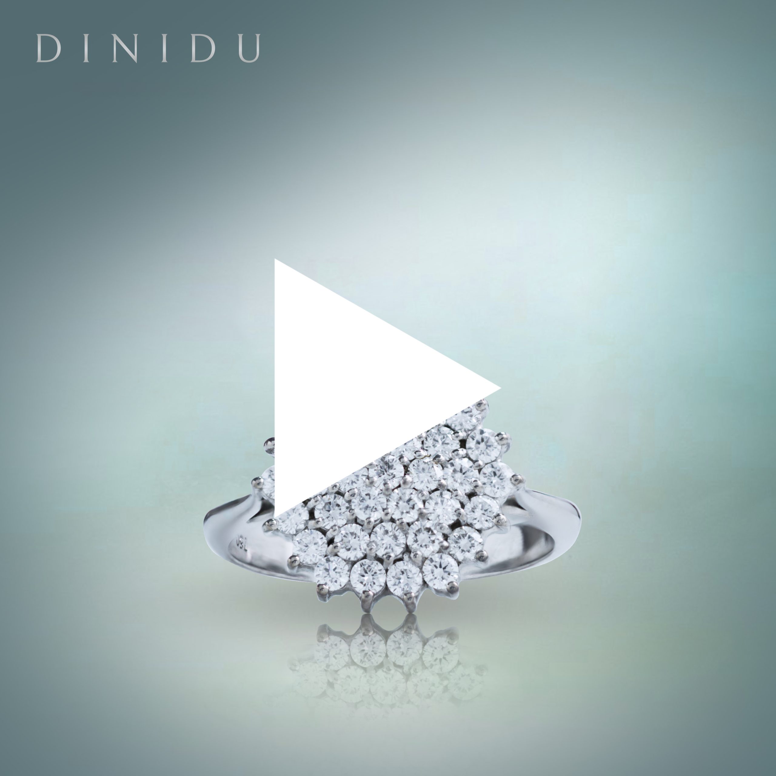 The cluster diamonds and white gold ring is made with perfectly set round brilliant diamonds giving an illusion that all the diamonds are one very large diamond.