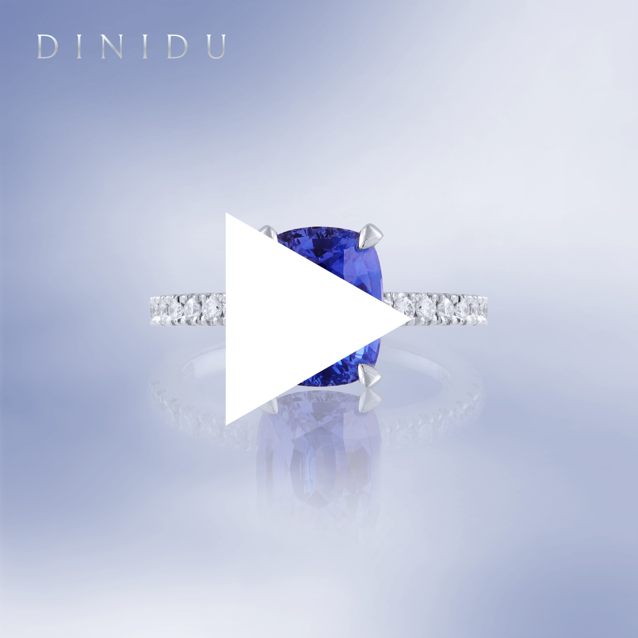 A symphony of ethereal blue hues dances with celestial brilliance in the blue sapphire hidden halo ring. Centred with a luminescent cushion-cut blue sapphire, this exquisite ring is set with a hidden halo of round brilliant diamonds along the white gold gallery and diamond accents along the white gold shank.