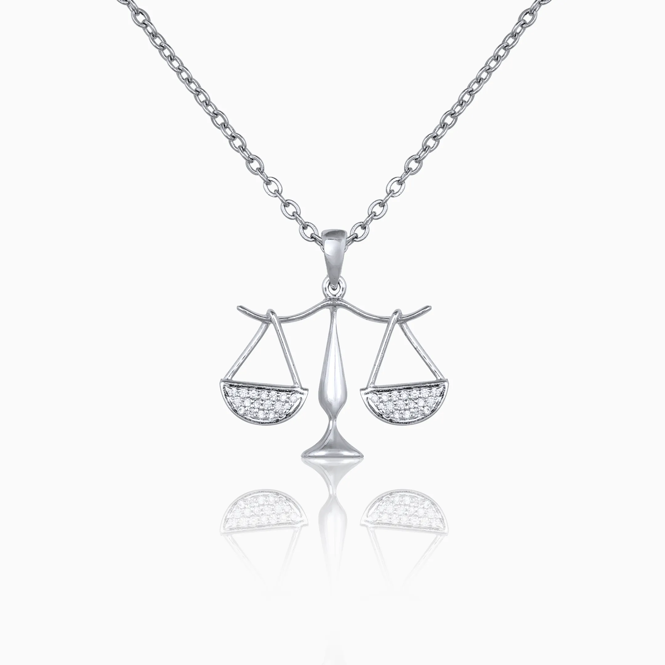 Channelling Lady Justice's unwavering brilliance, the elegant Justice pendant set with round brilliant diamonds on white gold symbolises the Scales of Justice that hang from a delicate white gold bail.