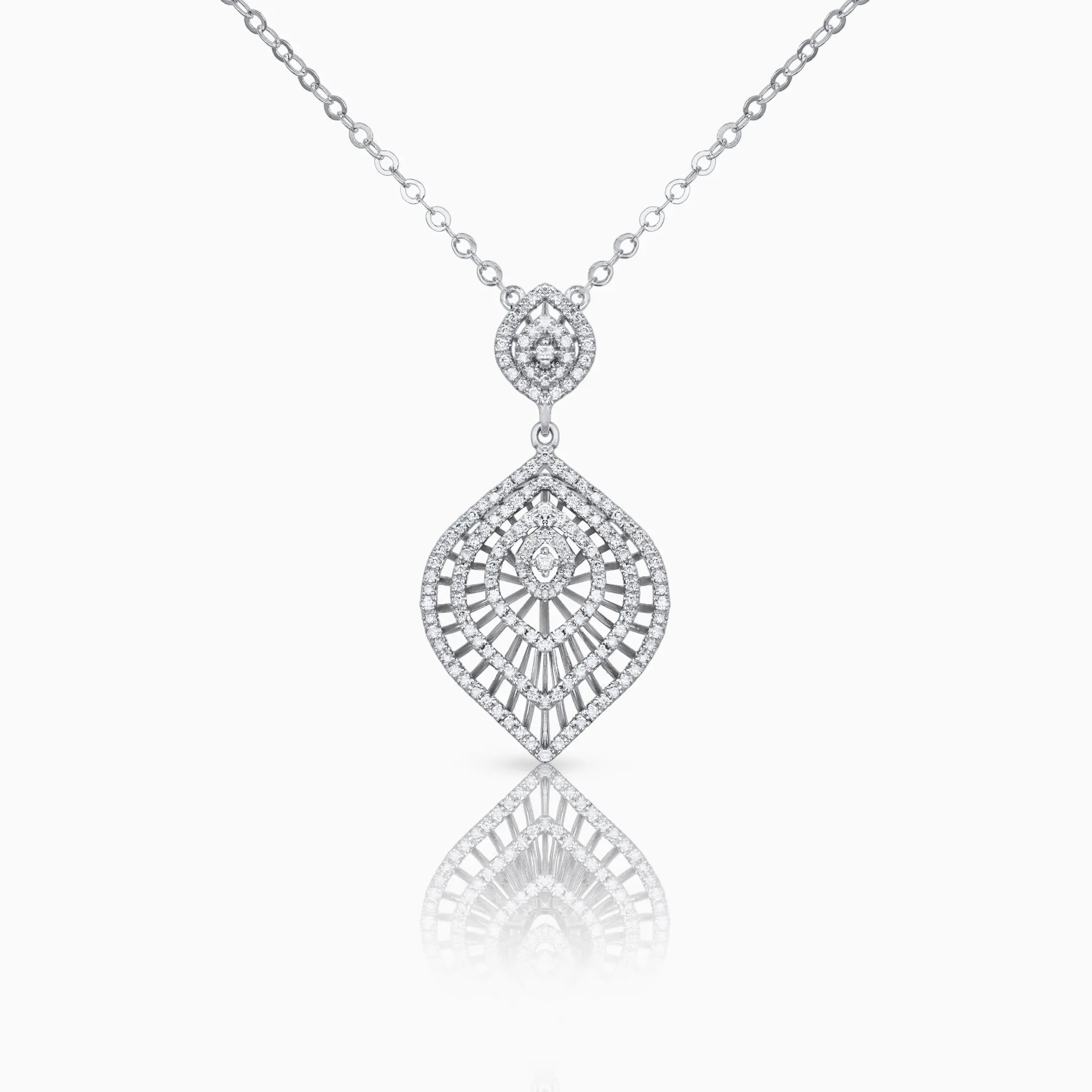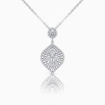 Whispers of an ancient forest echo through Elowen, a majestic white gold pendant that captures the soul of an enchanted elm leaf. Its sculpted leafy silhouette unfurls in graceful, concentric ripples, crafted with lines of glistening round brilliant diamonds that shimmer with quiet power. Suspended from a matching white gold chain, Elowen casts a spell of elegance upon all those who seek beauty.