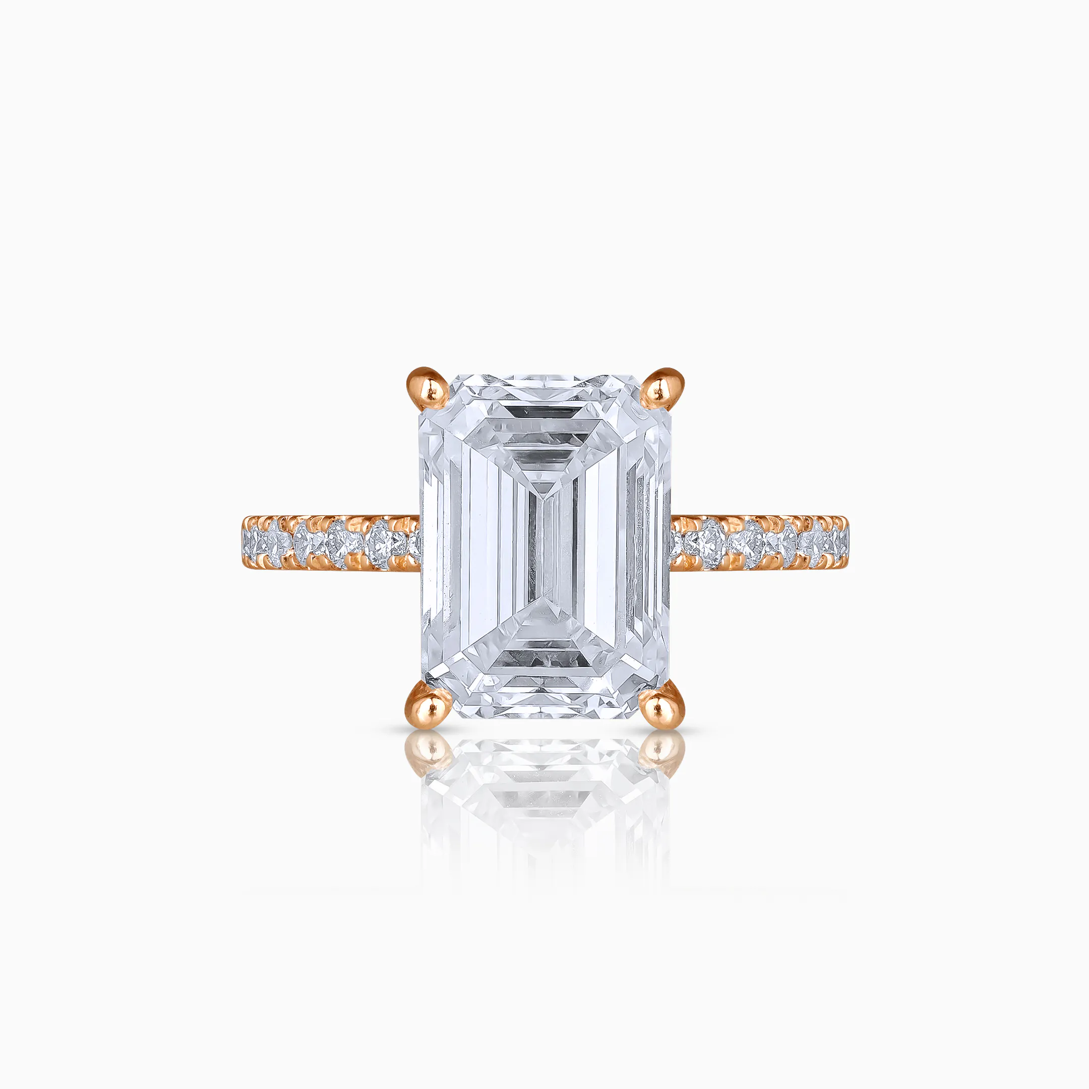 A whisper of eternal romance, the Giovanna ring centred with an effervescent emerald-cut lab-grown diamond is flanked by delicate round diamonds that sparkle like scattered stars on a rose gold shank, turning every gesture into a story of love and light.