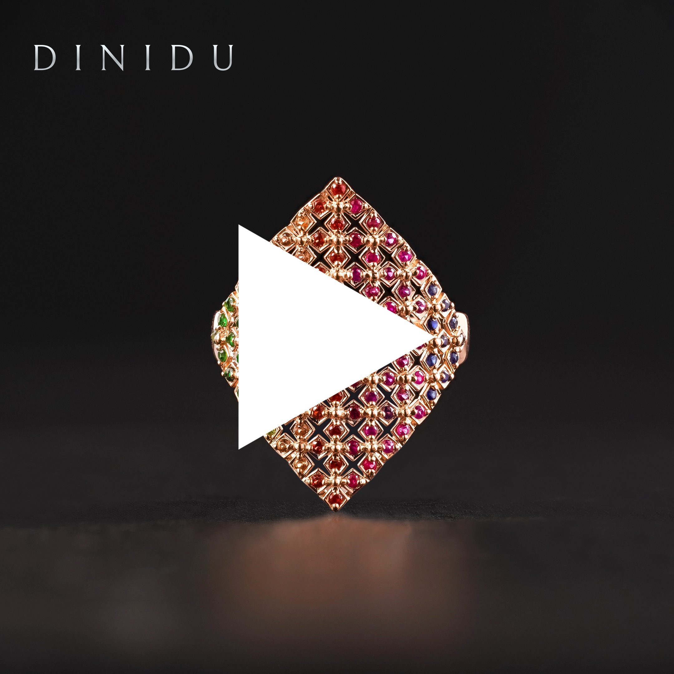 Witness the magic of shifting colours radiating brilliance in all directions with the Kaleido Cocktail Ring. This stunning design features a rose gold mesh-like ring top studded with petite round-shaped multicoloured sapphires and tsavorites. Completed with a rose gold shank, this ring is a statement of sophistication and tasteful beauty.