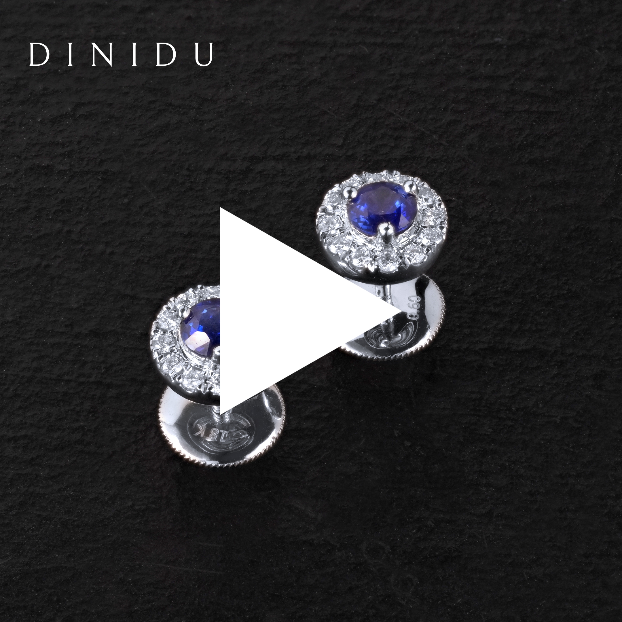 Inspired by the beauty of a midnight sky and its twinkling stars, the Liana earrings are set with velvety round cut blue sapphire centre stones that are encircled by a halo of round brilliant diamonds set in white gold.