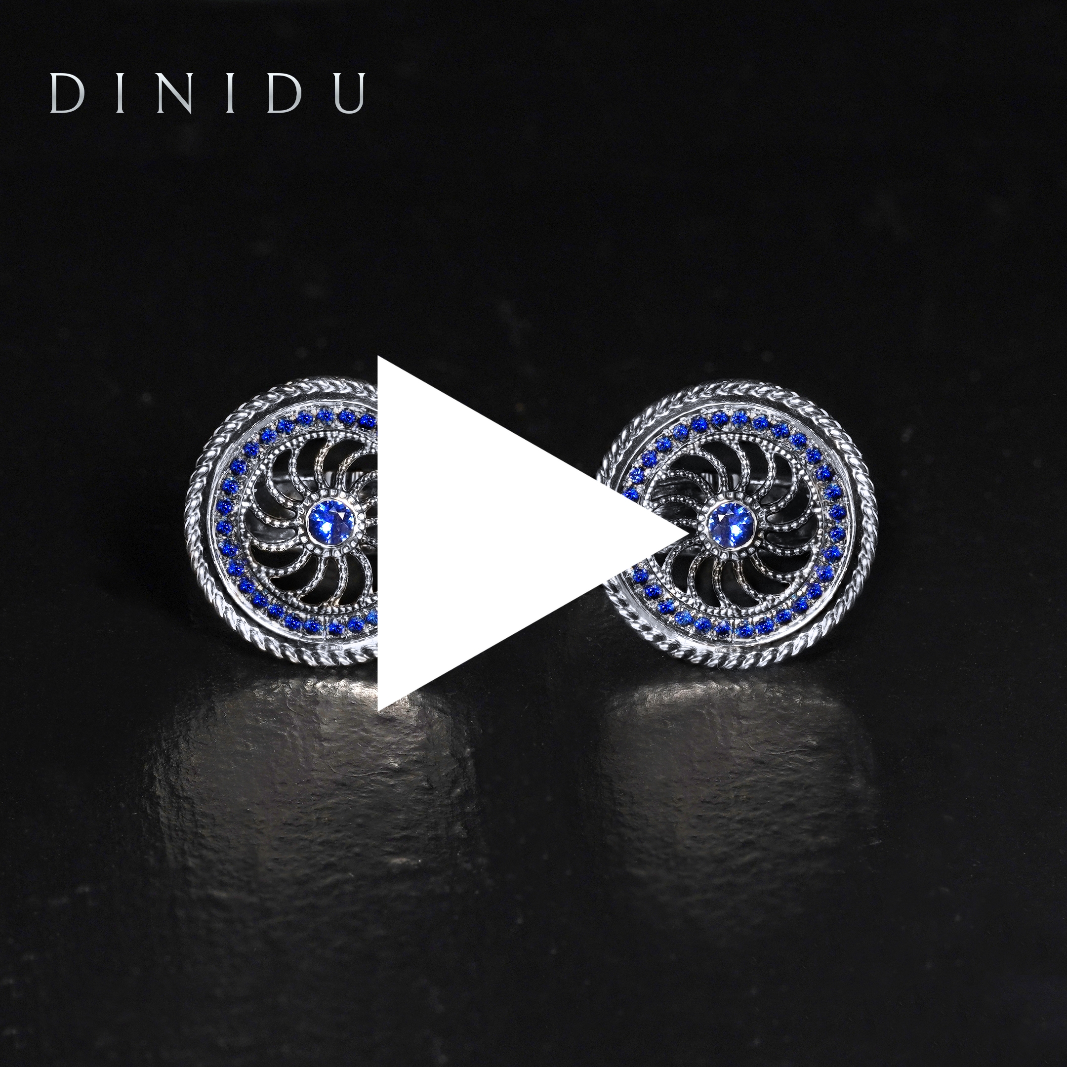 Draw a whirlwind of attraction when you style your look with the blue sapphires and silver cufflinks. Beautifully decorated with velvety blue Sapphire gemstones, these stunning silver cufflinks with delicate border details are inspired by the waves of a windstorm.