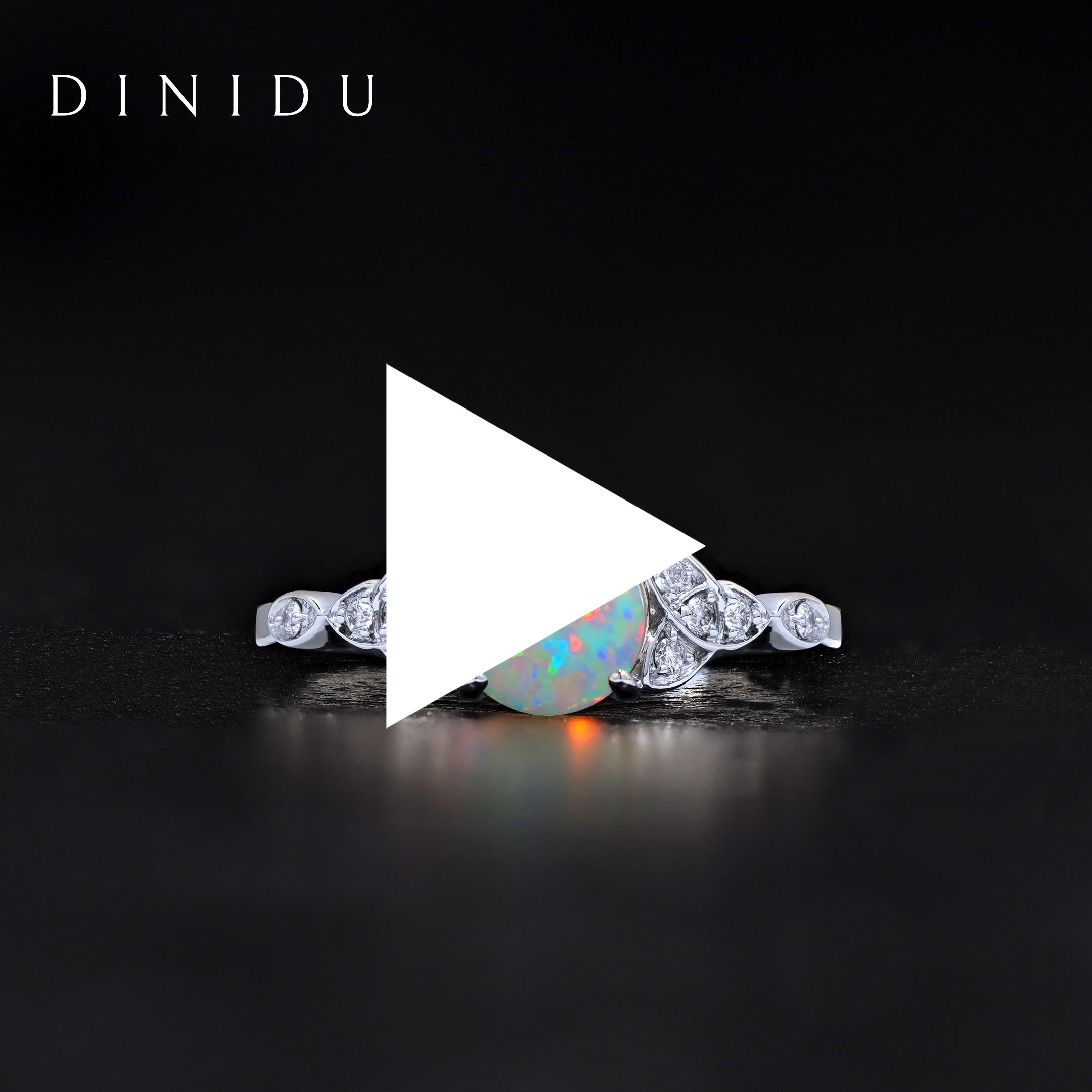 Legend says Zeus's tears when they fell to the earth, turned into iridescent opals. Centred with a dazzling opal gemstone and decorated with round brilliant side diamonds in a triquetra symbolic pattern, this exquisite ring with its white gold ring shank glows with splendid kaleidoscopic hues.