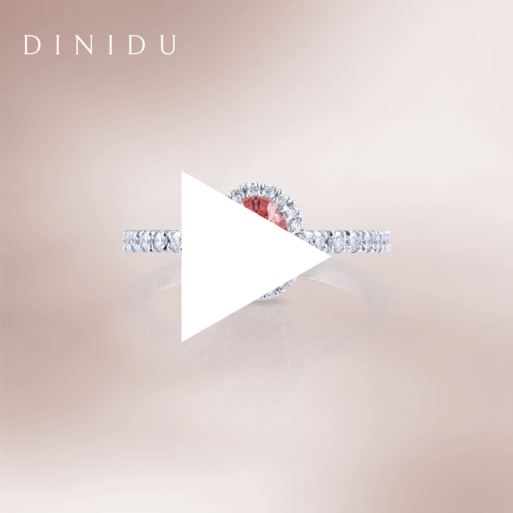 The pink and orange-tinged passion and the royal opulence of the padparadscha sapphire and round brilliant diamonds halo white gold ring are made for you kings and queens in love. Set with a rare padparadscha sapphire, it radiates lush hues of pink and orange, enclosed within a glittering halo of round brilliant diamonds along its gleaming white gold shank.