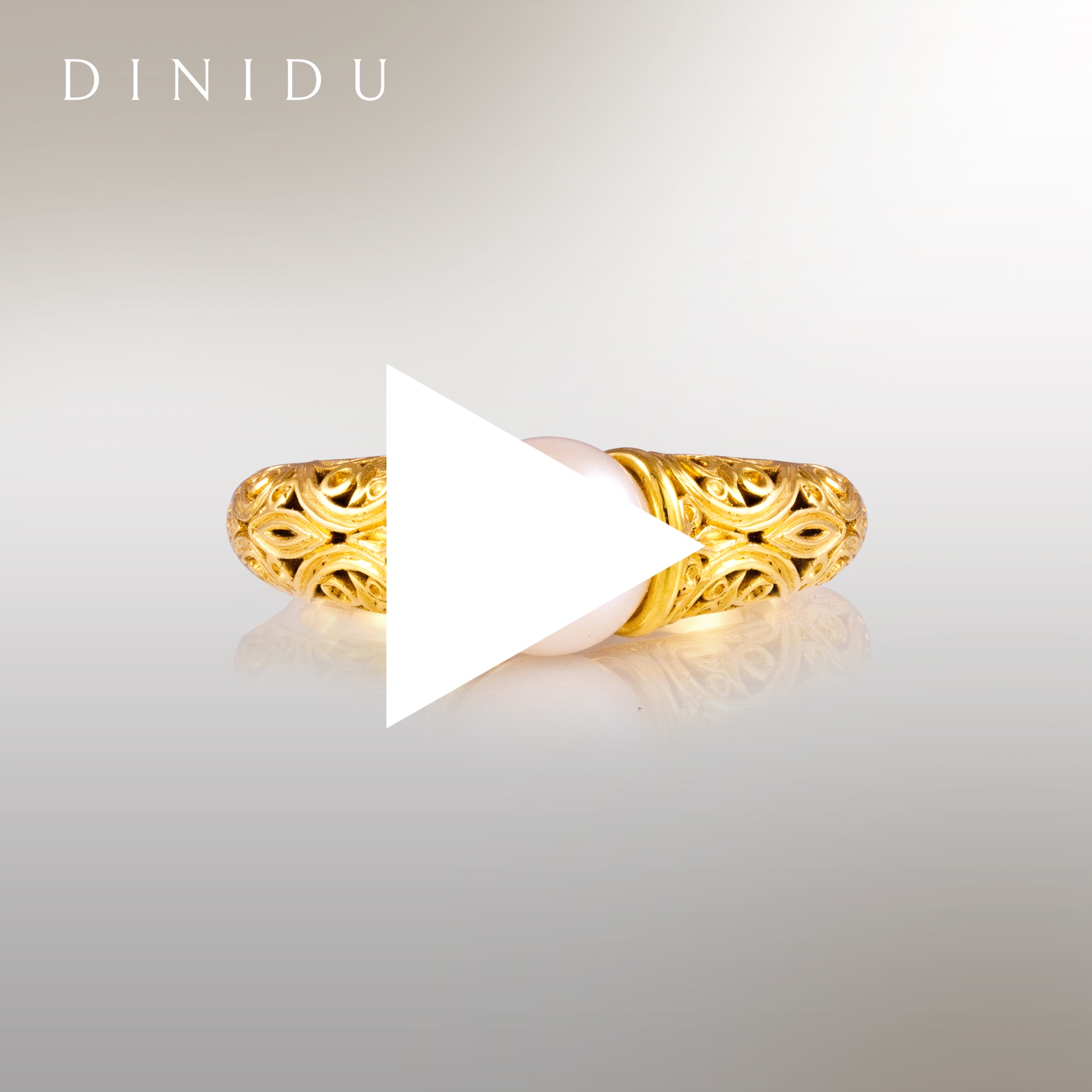 This pearl-embedded yellow gold ring illuminates an antique ambience. The delicate floral carvings on the yellow gold band embody the very essence of nature's beauty enhanced by the effort of mankind.