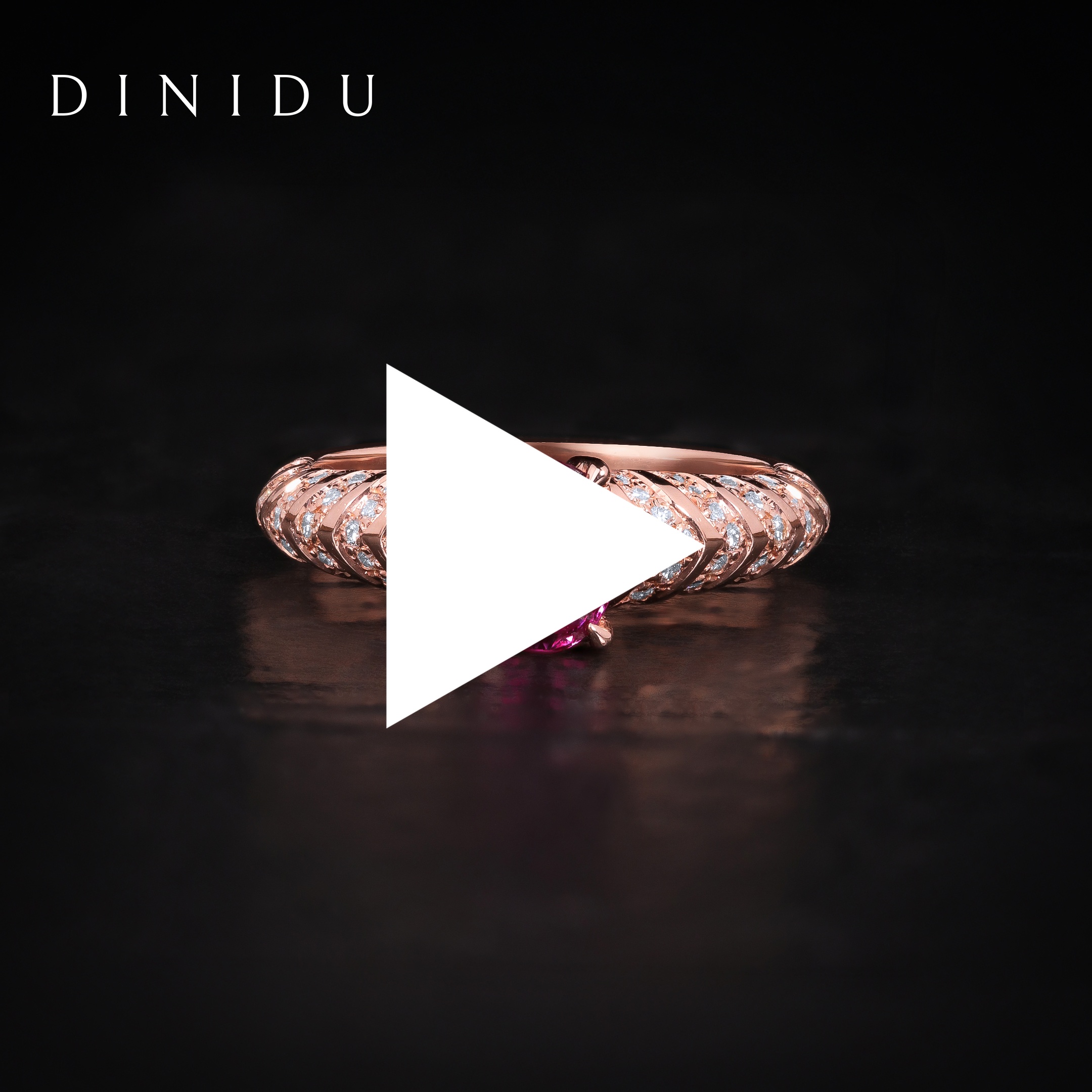 An eternal flame of passion and romance dances in the heart of the Phoenix ring, centred with a majestic oval shaped pink sapphire. Its unique rose gold ring shank is beautifully adorned with parallel lines of round brilliant diamonds interspaced between rose gold lines, flowing along the curvature of the shank to reflect light from every angle.