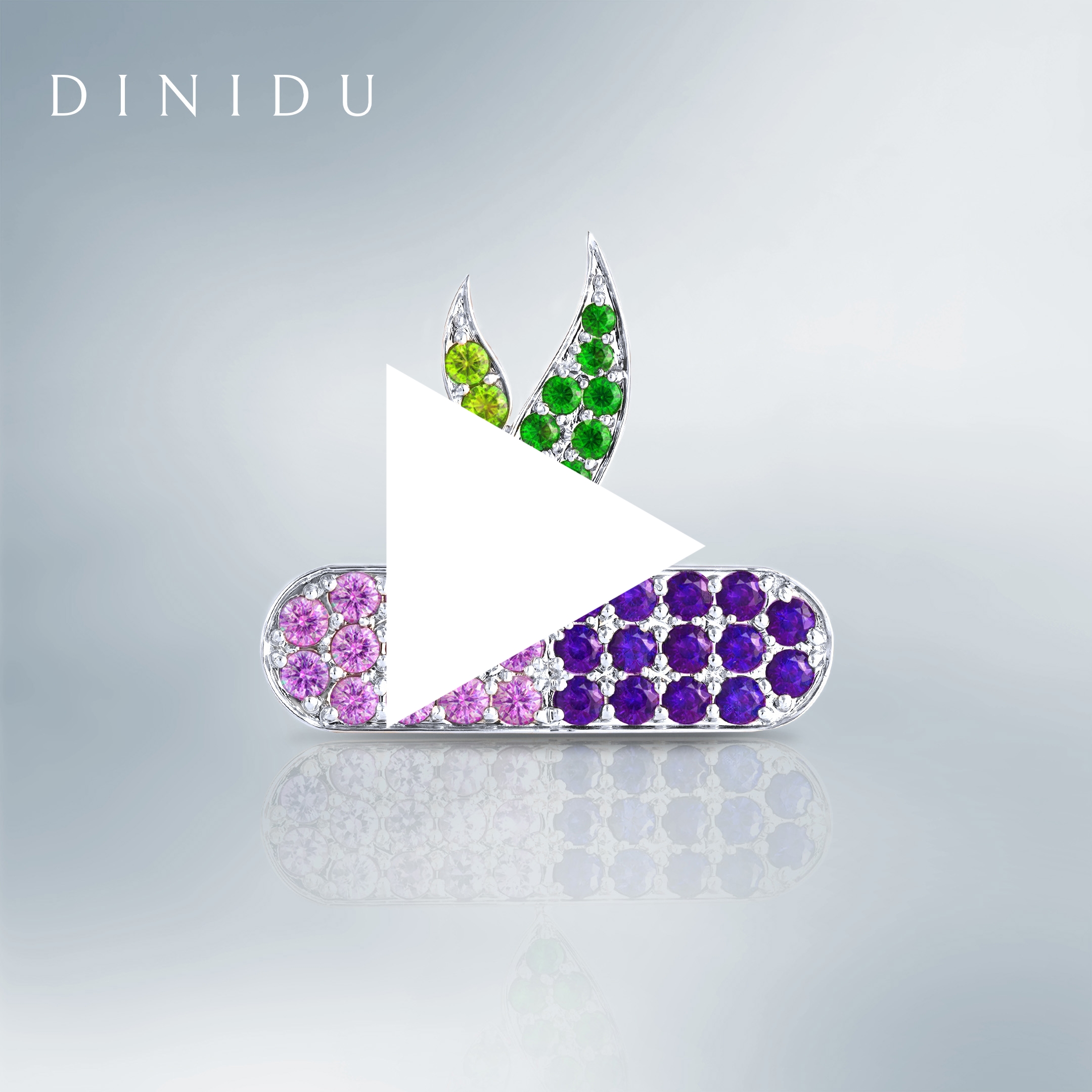 The pink and purple sapphires and light and dark green tsavorites white gold lapel pin is a work of art that personalises its wearer. This lapel pin was customised to represent the wearer's logo with unique beauty and personal meaning.