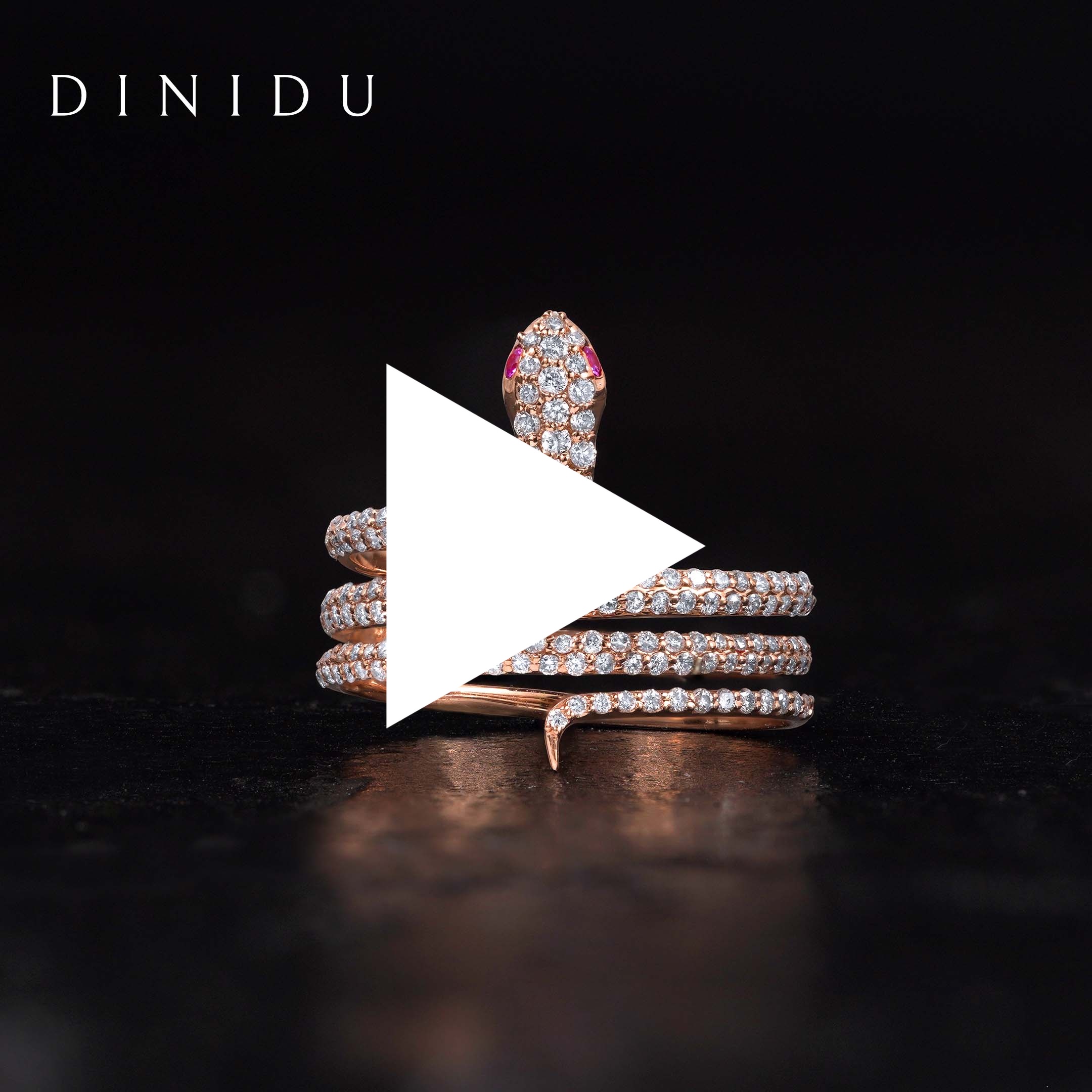 The pink sapphire and round brilliant diamonds rose gold snake ring mirrors medusa's alluring power. Crafted intricately with attention to detail, it features pink sapphire eyes and snake-like detailing, adorned with diamonds.
