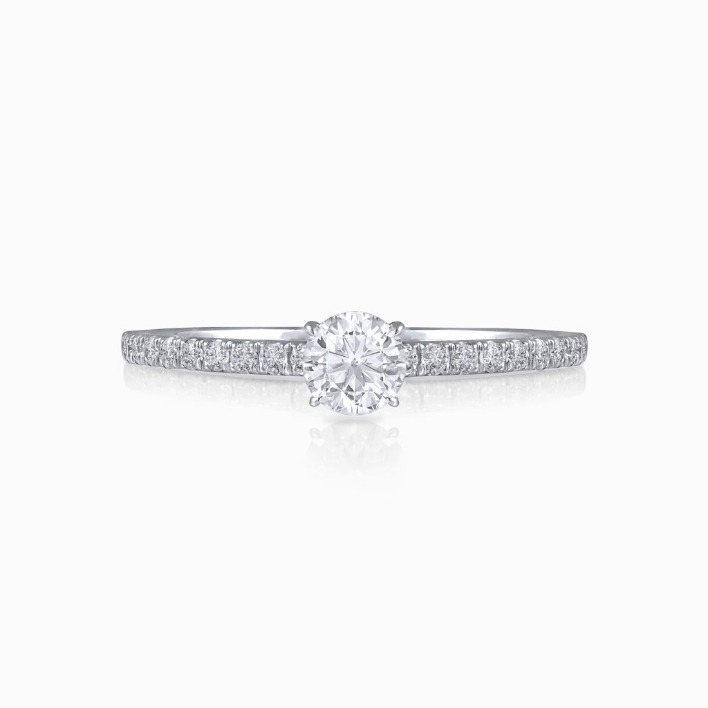 The round brilliant diamond white gold ring symbolises eternal love. With a dazzling centre diamond and white gold shank decorated with half-shank diamonds. this ring exudes sheer elegance and captivates with mesmerising brilliance.