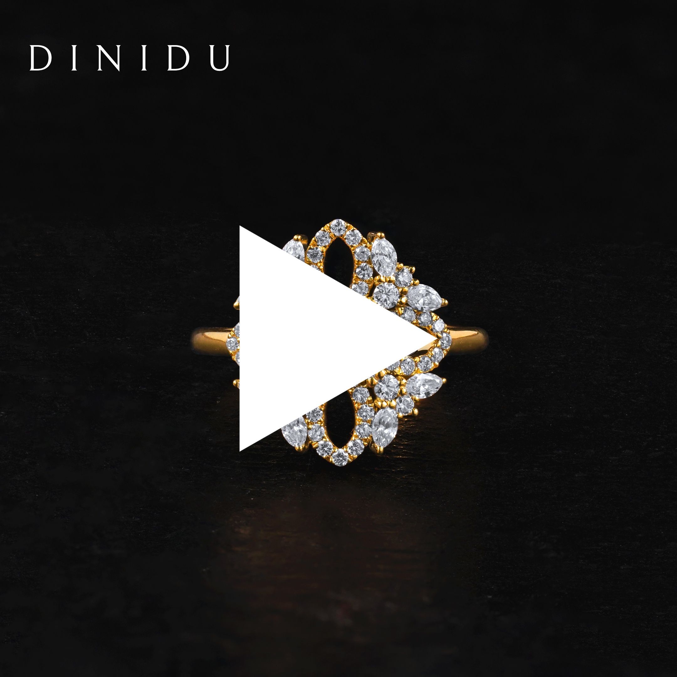 Round Brilliant Diamonds and Marquise Diamonds Yellow Gold Ring