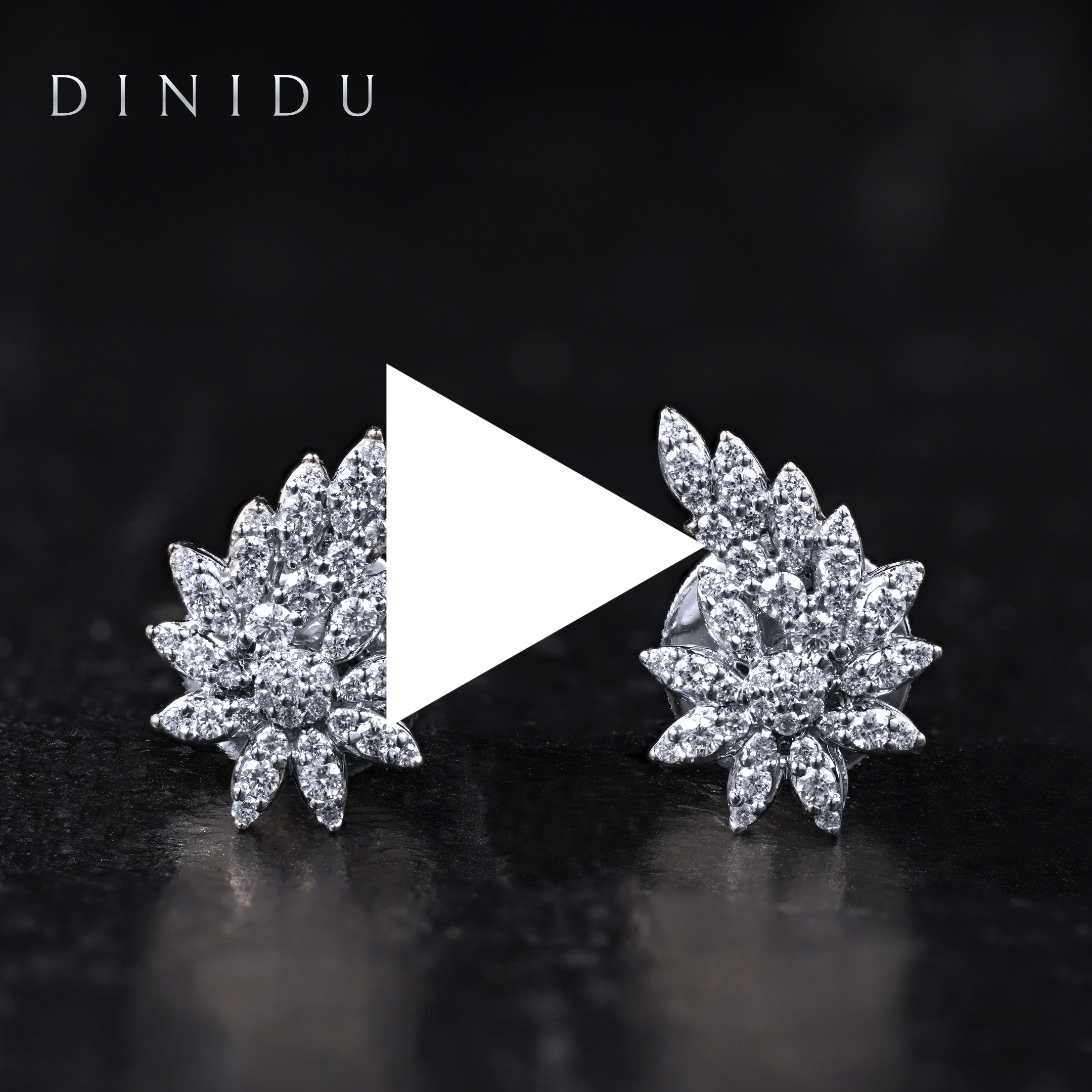Discover a secret garden with floral illusions across the round brilliant diamonds and white gold earrings. Crafted in white gold, each petal and leaf is designed to create the appearance of marquise diamonds. Upon a closer look, round brilliant diamonds are meticulously placed within white gold prongs, unveiling blooming flowers enveloped by dancing leaves in their shape.