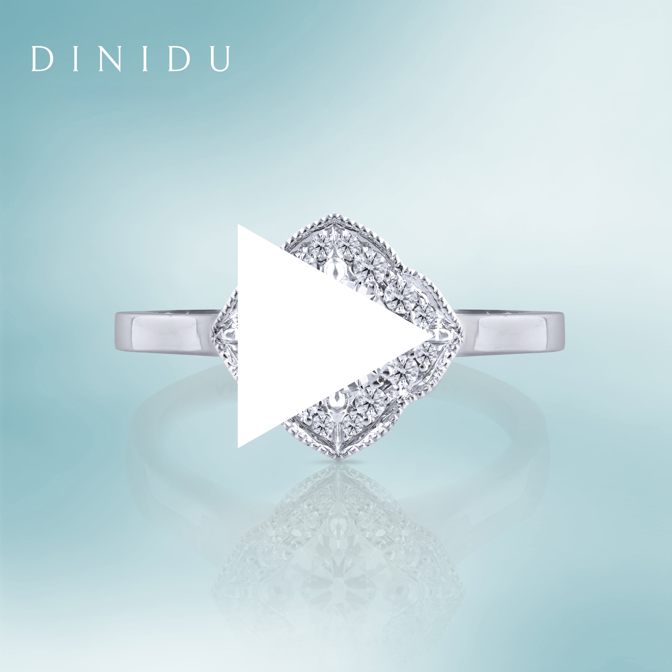 The round brilliant diamonds and white gold ring showcases a magnificent floral design symbolising eternal soulmate bonds. Its stunning centre diamond is surrounded by smaller diamonds forming delicate petals with a beaded border that is set on a lovely white gold shank. .