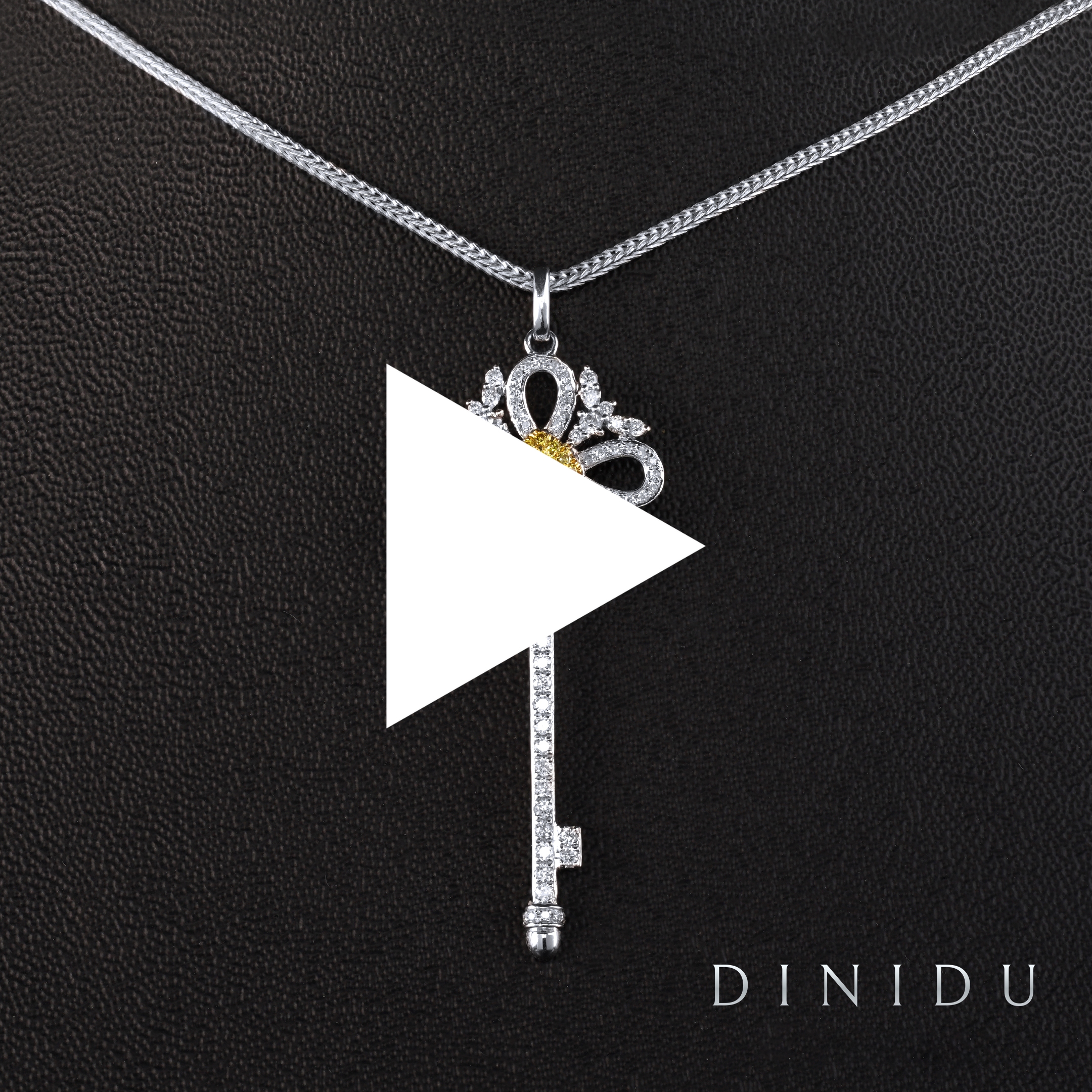 Unlock your soulmate’s heart with the round brilliant diamonds and yellow diamond key pendant. Shaped like an antique key, this stunning white gold pendant is decorated with round brilliant diamonds and sunshine yellow diamonds embedded at the centre.