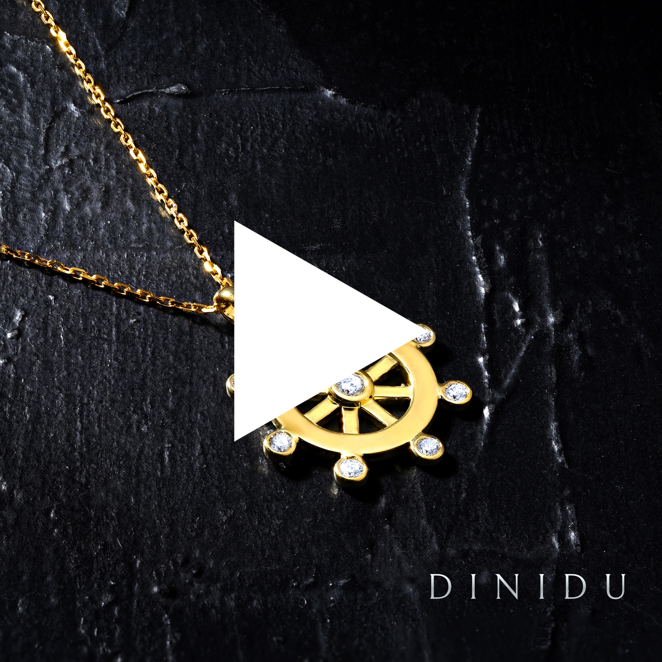 The round brilliant diamonds and yellow gold dharmachakra pendant symbolises seeking inner harmony, crafted with scintillating diamonds in a yellow gold wheel of dharma design.