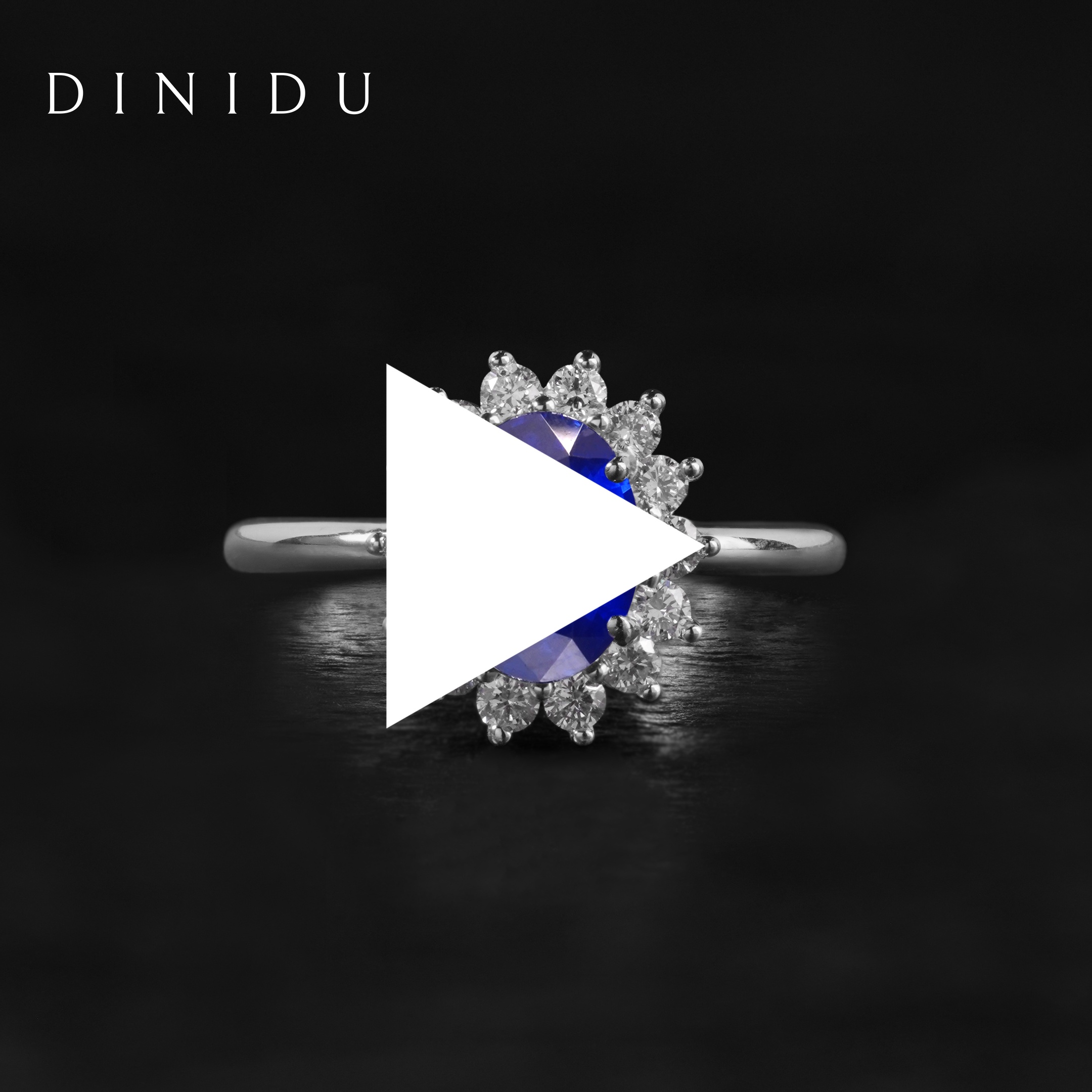 Royale Timeless Blue Sapphire and Diamond Halo Platinum Ring