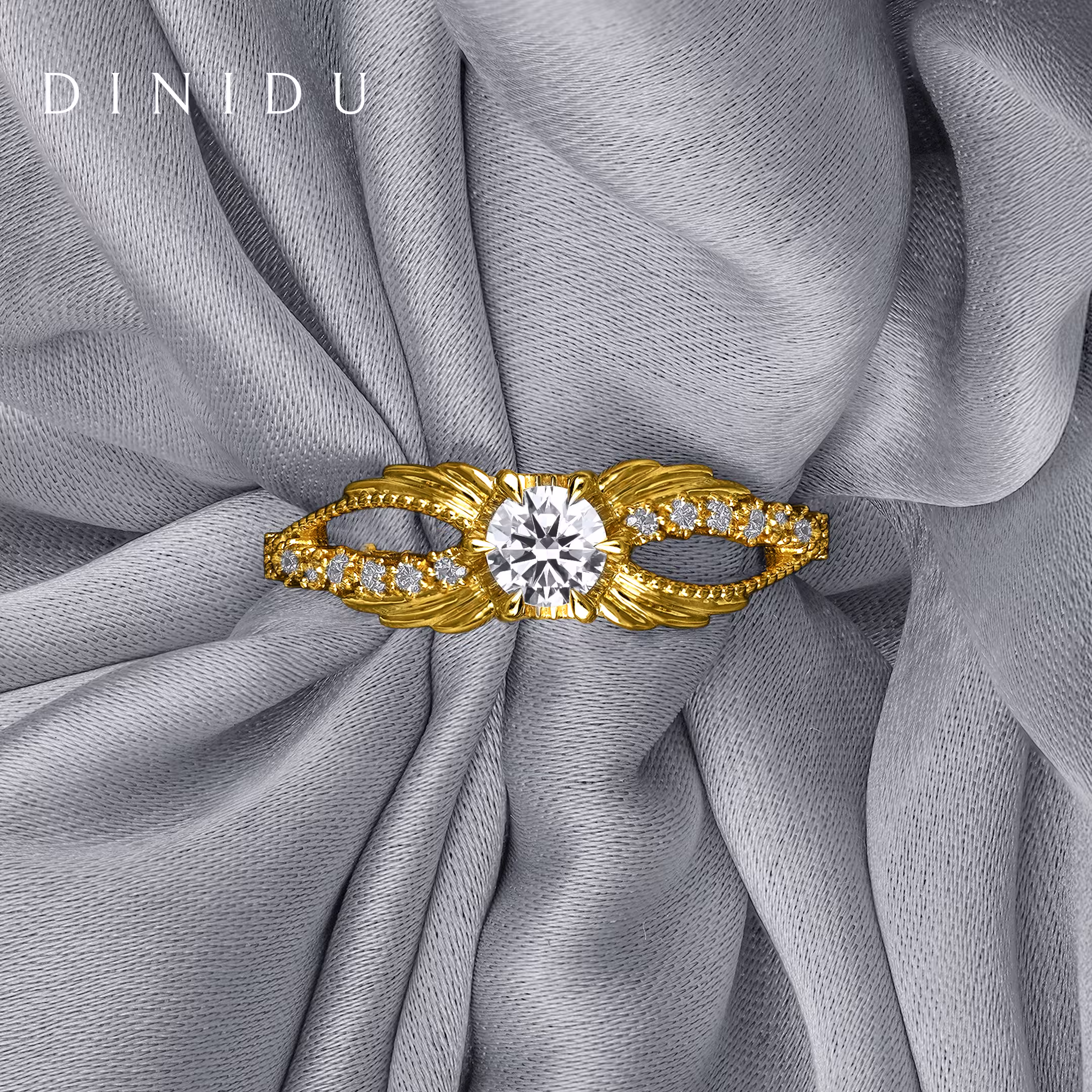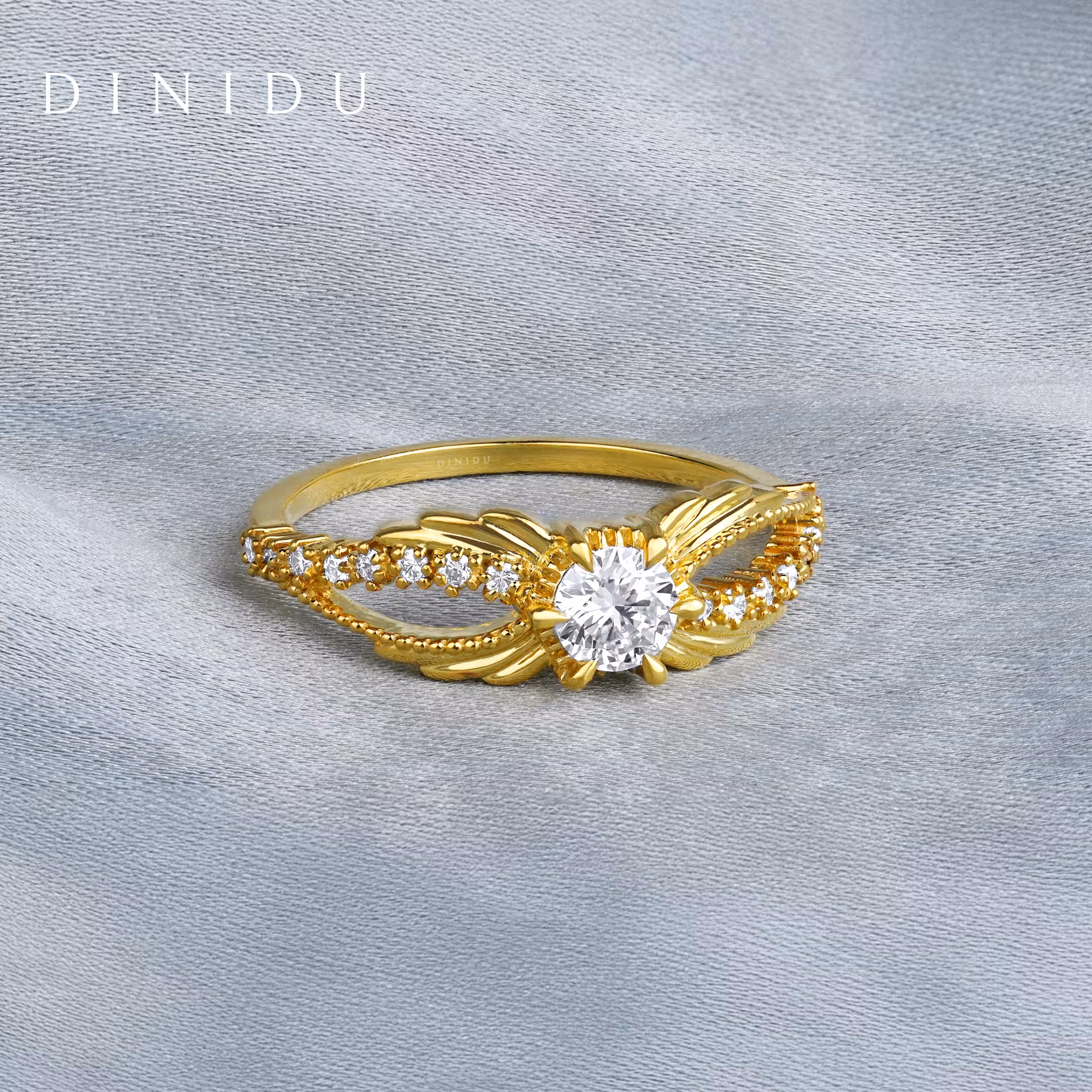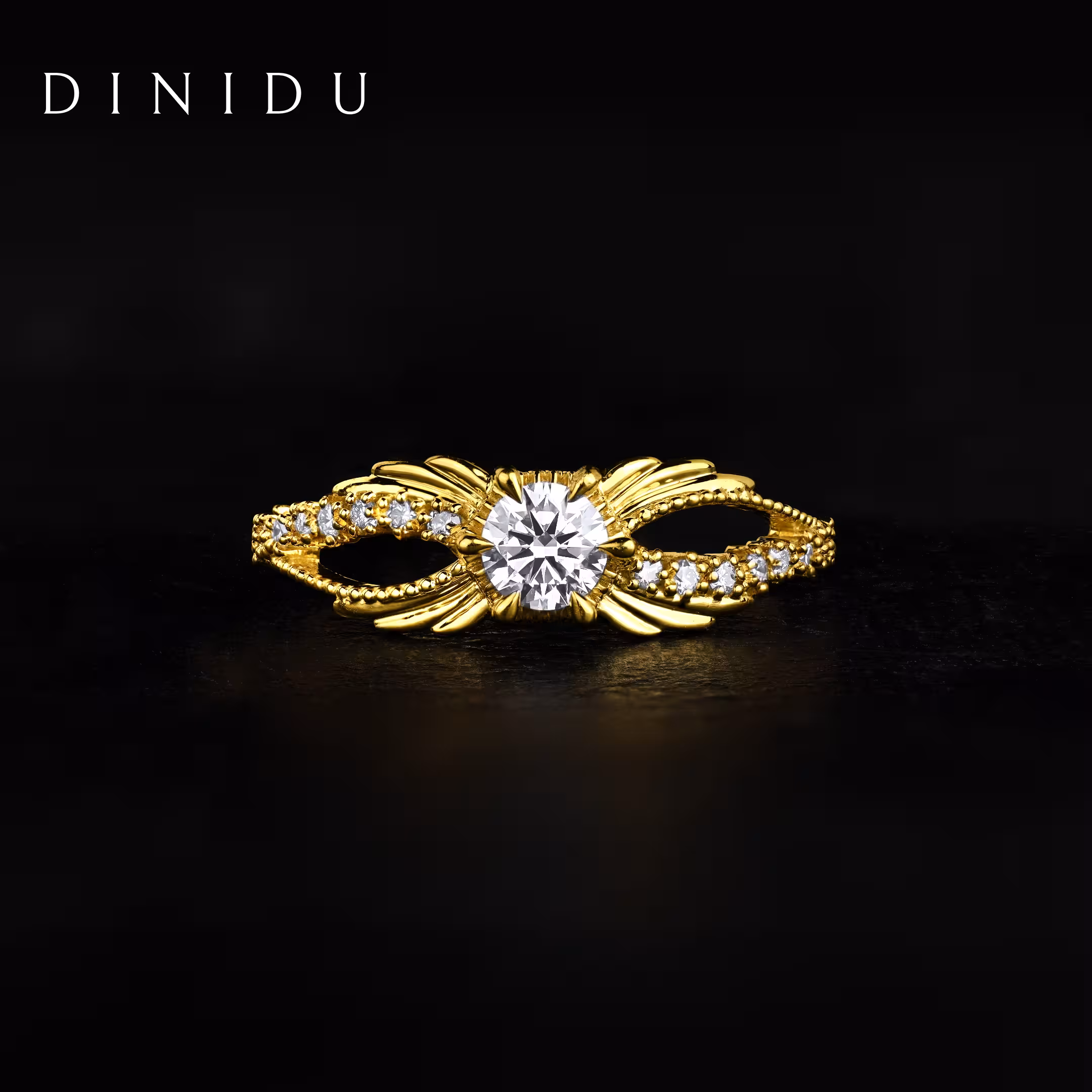 Like sunlight spilling across the morning sky, the Skylume ring captures the magic of light in motion. Set with a luxurious round brilliant diamond centre that shines like the rising sun, smaller round diamonds decorate the yellow gold shank with filigree beads adding a trail of glimmering brilliance. Intricate wings-inspired gold detailing envelops the ring top and shank, evoking aspiration, elegance and the power of a luminous spirit.