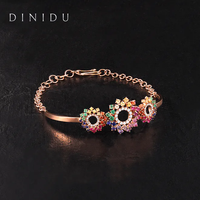 For those looking for statement bangles, our Spectrums Bangle from our signature Spectrums Collection introduces a vibrant trend of gold bangles set with blooms of multicoloured gemstones, including diamonds, sapphires and emeralds. This piece evokes a bold and joyous vibe and serves as a versatile masterpiece that complements any outfit, proving that gold bangles can be as colourful as your vision for life.