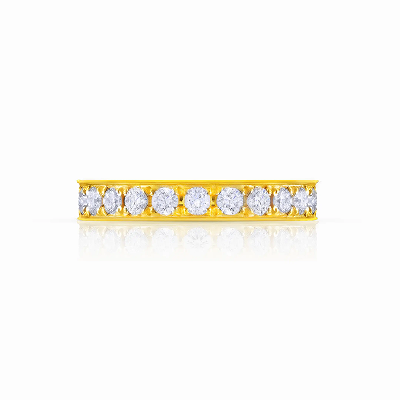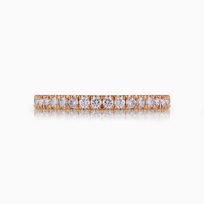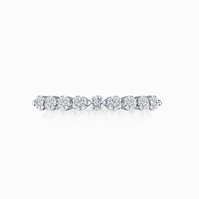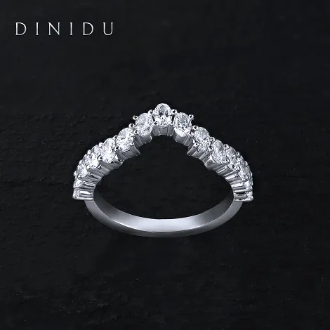 Many couples who initially design an engagement ring prefer to avoid altering it later to fit a matching wedding band. To maintain the original design while still achieving a cohesive look, most brides opt for a guard ring as the wedding band. The stone-set chevron band has become a particularly popular choice for this purpose, as its V-shaped design naturally complements engagement rings, allowing for a seamless, stacked appearance.
