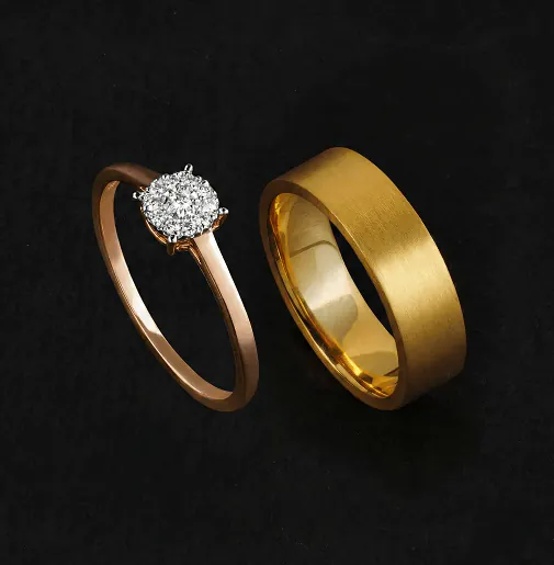 Engagement rings are typically presented when proposing and often feature a centre stone such as a diamond or sapphire. For couples, engagement rings are also couple rings or bands, designed for both him and her, to be presented formally at an engagement ceremony.