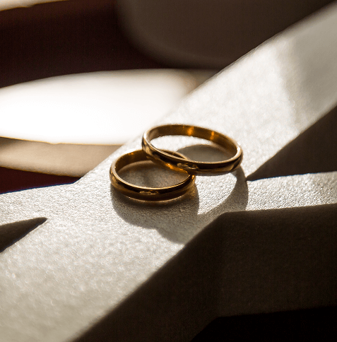 However, coordinated wedding rings for couples need not be identical. By sharing a defining element such as the metal colour (eg: platinum, yellow gold), finish (e.g., brushed, stone settings), or a thin groove or engraving patterns, while personalising the rest to each partner’s taste.